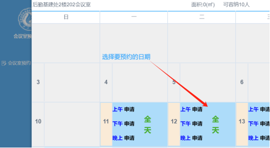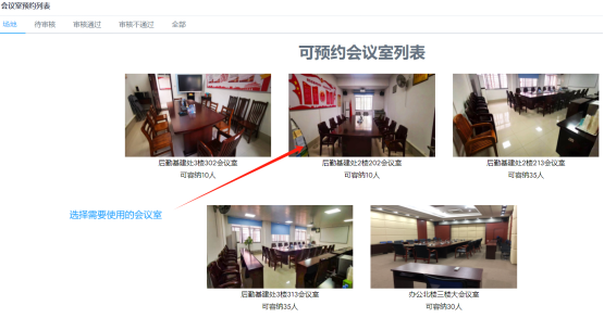 (一)、登录系统后,点选您需要预约的会议室(如下图)。