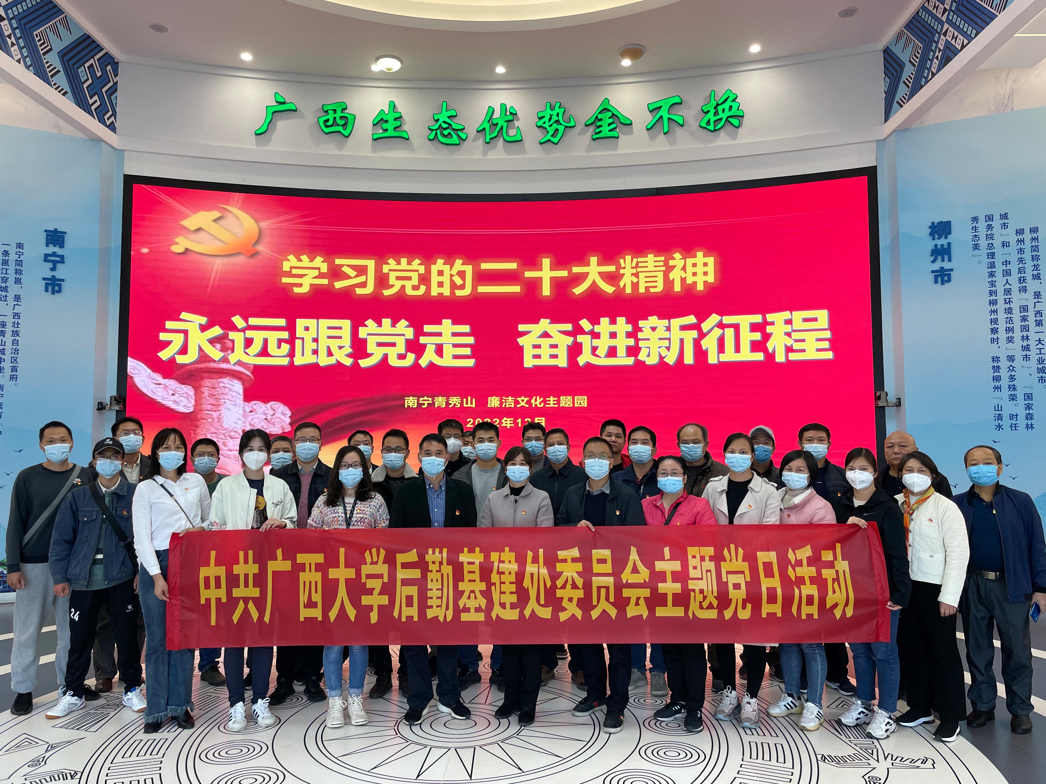 为深入推进“清廉西大”建设,进一步提高党员干部的廉洁自律意识,12月14日后勤基建处党委组织全体党员赴青秀山竹园廉洁文化主题园开展“贯彻党的二十大,清正廉洁葆初心”主题党日活动。
