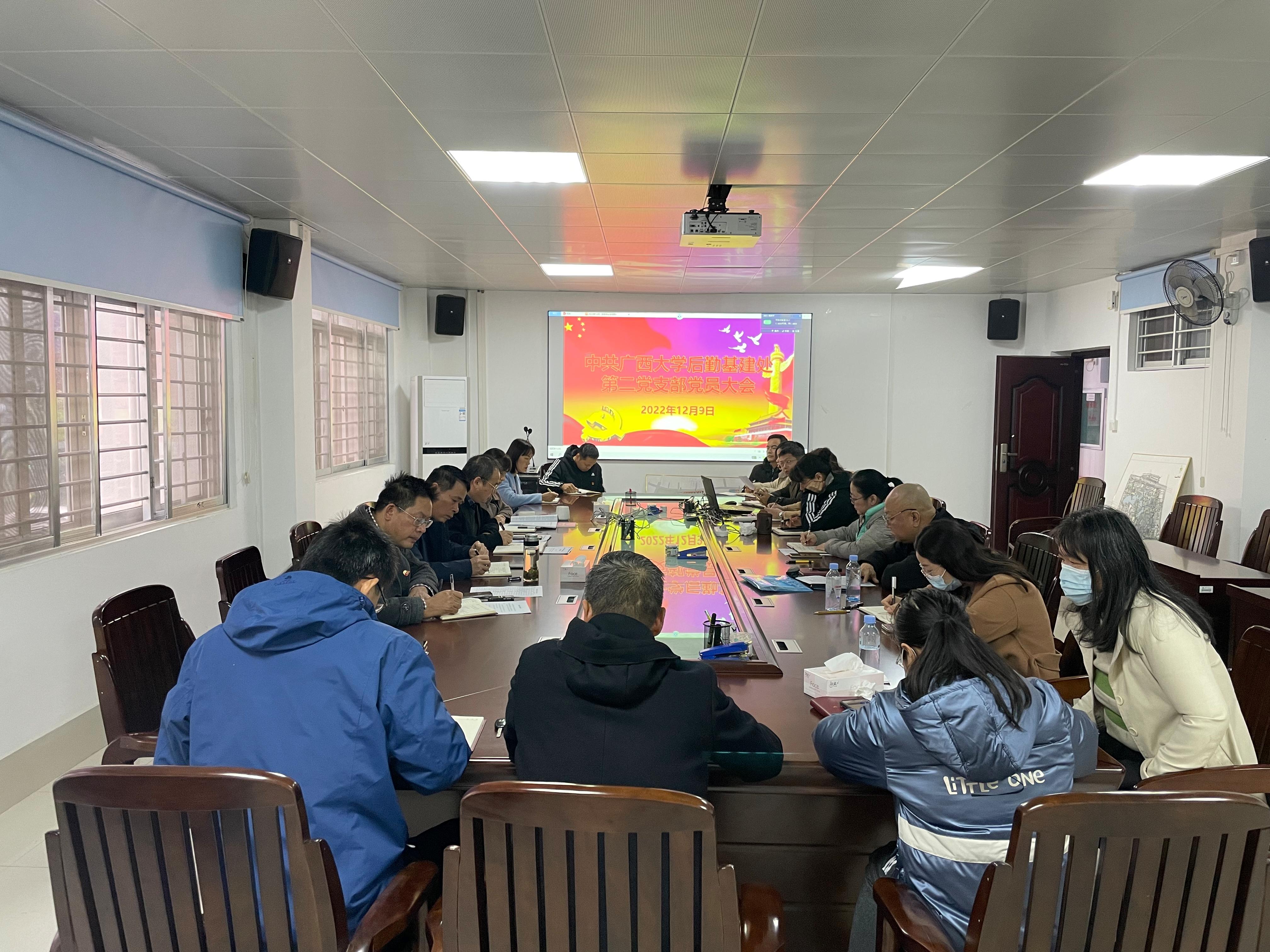 会前,支部安排党员同志自学《中共中央关于认真学习宣传贯彻党的二十大精神的决定》,习近平总书记参加党的二十大广西代表团发表的重要讲话、在中国共产党第二十次全国代表大会闭幕会上发表的重要讲话等内容。会上,后勤基建处党委副书记、纪委书记袁荣卿同志及其他六名党员同志对以上学习内容进行了导学并分享各自学习心得体会。最后,党支部书记徐华同志对《中国共产党章程(修正案)》进行专题讲解,引导党员同志们深刻领会、全面把握党章修改的重大意义和内容。