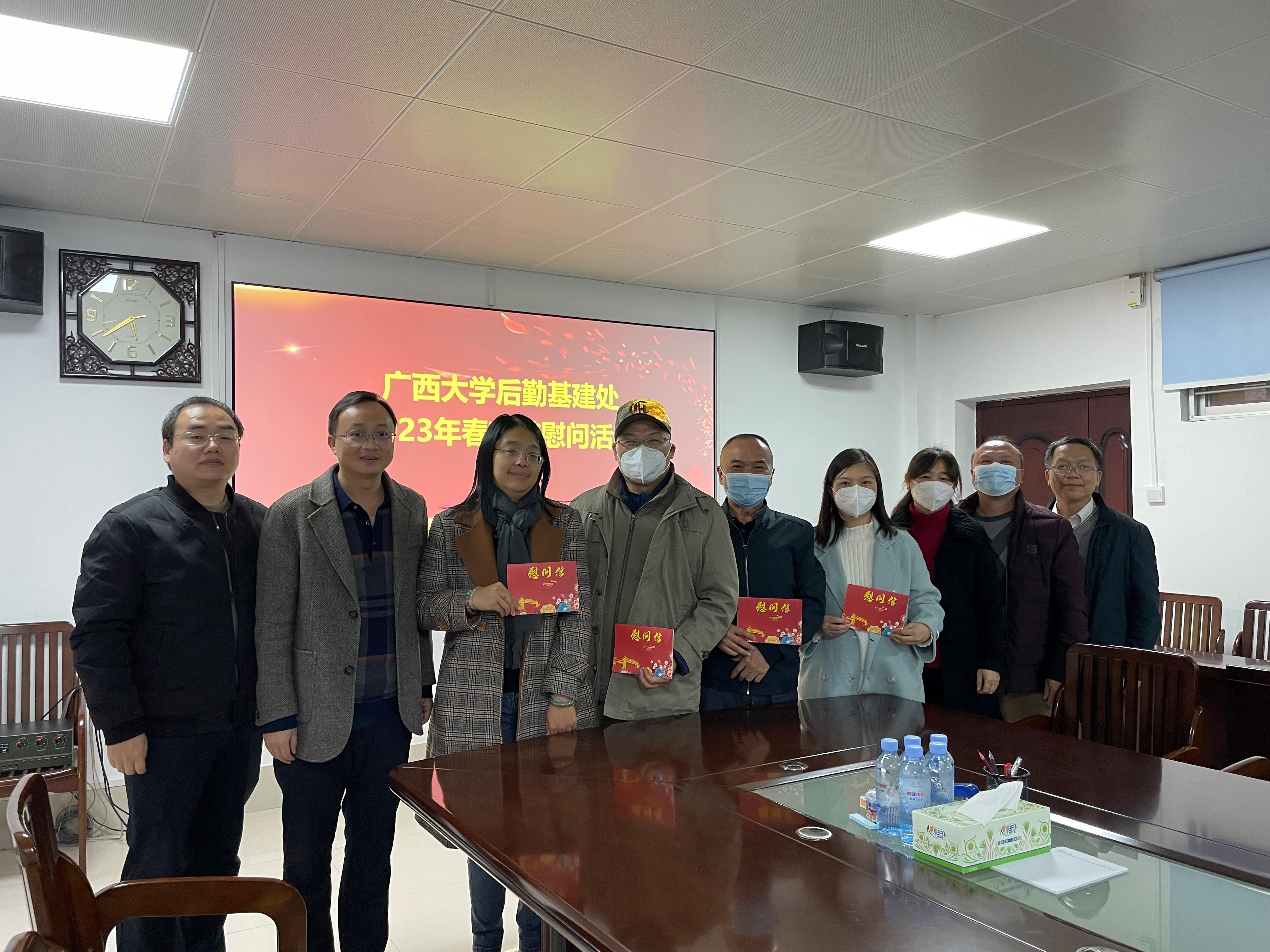 为进一步激励员工积极工作、主动担当作为,2023年1月4-5日,在春节即将到来之际,后勤基建处党委以实地走访、座谈交流等形式慰问后勤基建处的离退休职工代表、生活困难党员和群众代表、基层一线职工代表等,送去组织的温暖关怀和新年祝福。