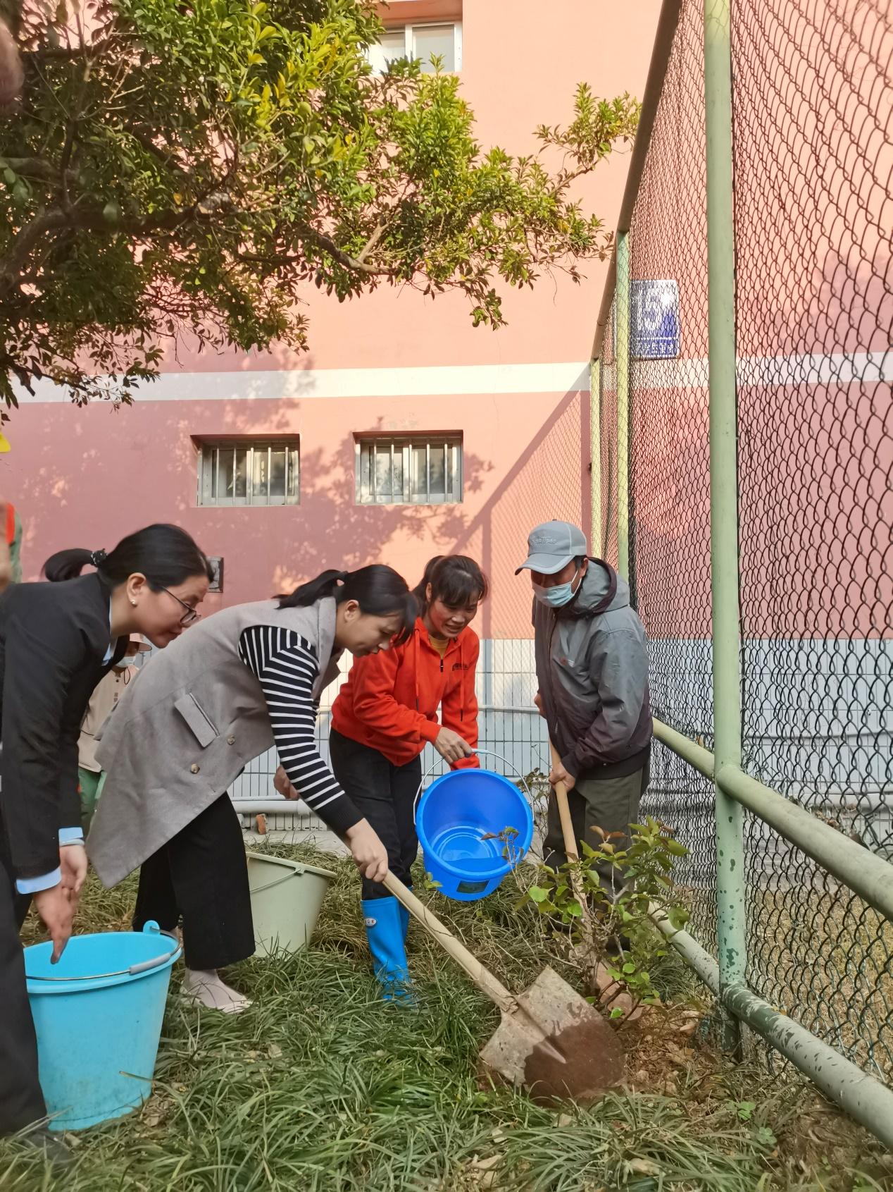 春回大地万物苏,植树添绿正当时,我们迎来了第45个植树节,为增强党支部全体党员的生态和环保意识,亲身体验植树劳动的乐趣,提升党支部的凝聚力,树立“绿色校园、从我做起”的理念,为美丽校园学生公寓再添葱葱绿意。2月28日下午,后勤基建处第一党支部联合学生公寓服务中心在学生公寓西6-15栋园区开展“我为公寓添抹绿”植树主题党日活动。