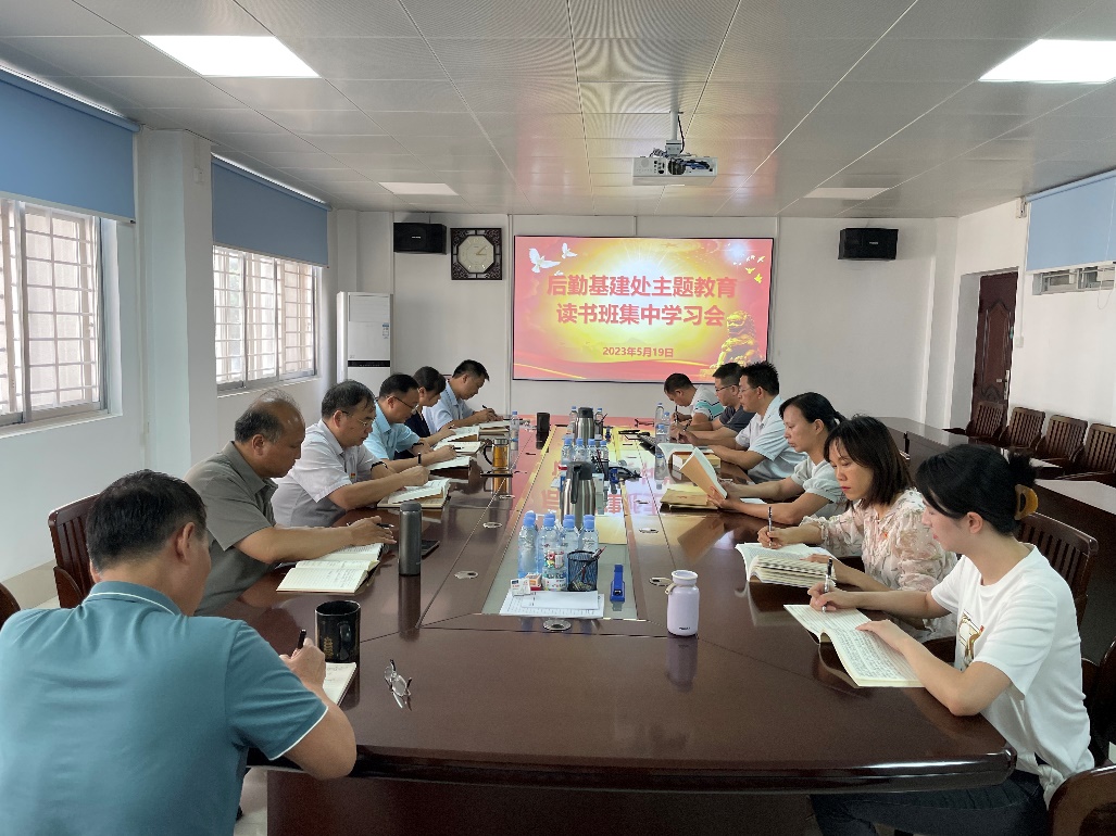 根据后勤基建处学习贯彻习近平新时代中国特色社会主义思想主题教育读书班工作方案安排,5月19日下午,后勤基建处主题教育读书班成员开展第六次集中学习,认真研读《习近平著作选读》第二卷,读书班全体成员参加,党政班子成员依次领学。