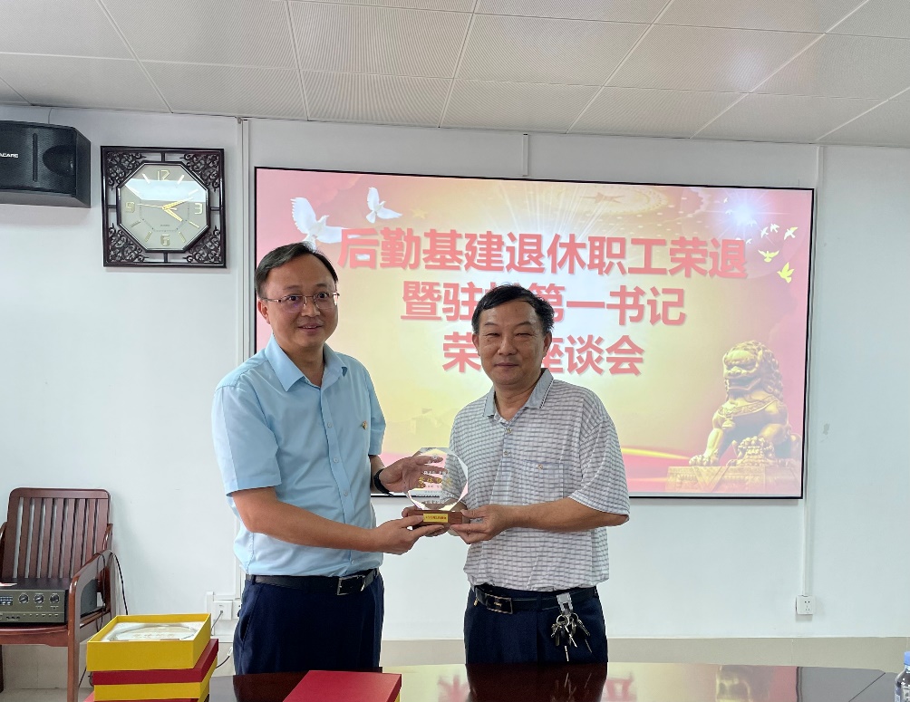 为感谢退休教职工和驻村第一书记所做出的积极贡献,体现后勤基建处党委对退休教职工和驻村第一书记的关心关爱,增强退休职工荣退和驻村第一书记荣归的荣誉感和仪式感,6月5日下午,后勤基建处党委组织召开退休职工荣退暨驻村第一书记荣归座谈会,全体处领导班子成员、五位退休教职工、返岗驻村第一书记,以及党员和教职工代表参加座谈会,会议由后勤基建处党委副书记、副处长(主持全面工作)余波主持。