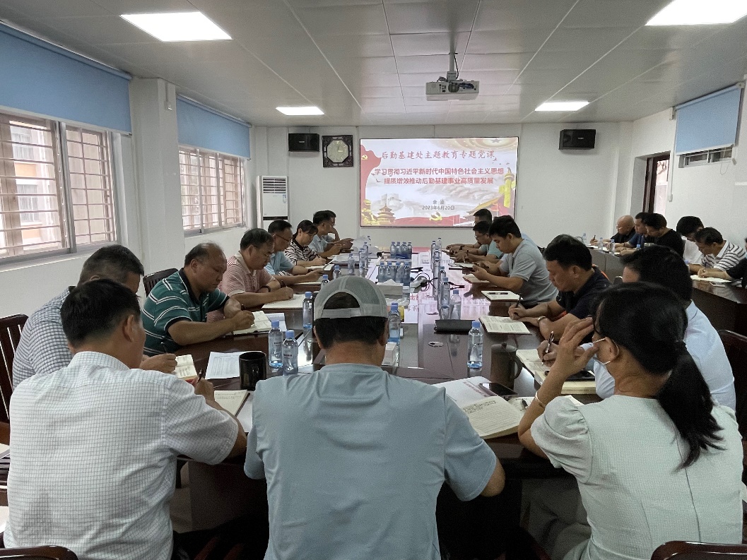 为扎实开展学习贯彻习近平新时代中国特色社会主义思想主题教育,6月20日下午,后勤基建处党委副书记(主持党委全面工作)余波以《学习贯彻习近平新时代中国特色社会主义思想,提质增效推动后勤基建事业高质量发展》为题讲授专题党课,后勤基建处党政班子成员、全体党员及入党积极分子参加。