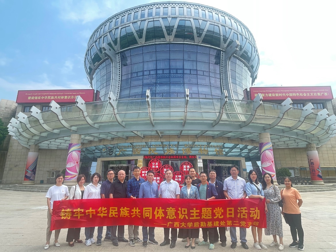 为深入学习贯彻党的二十大精神,加深对广西各民族文化的认识和理解,教育引导支部党员坚定文化自信,铸牢中华民族共同体意识,5月7日后勤基建处第二党支部赴广西民族博物馆开展“铸牢中华民族共同体意识”主题党日活动。