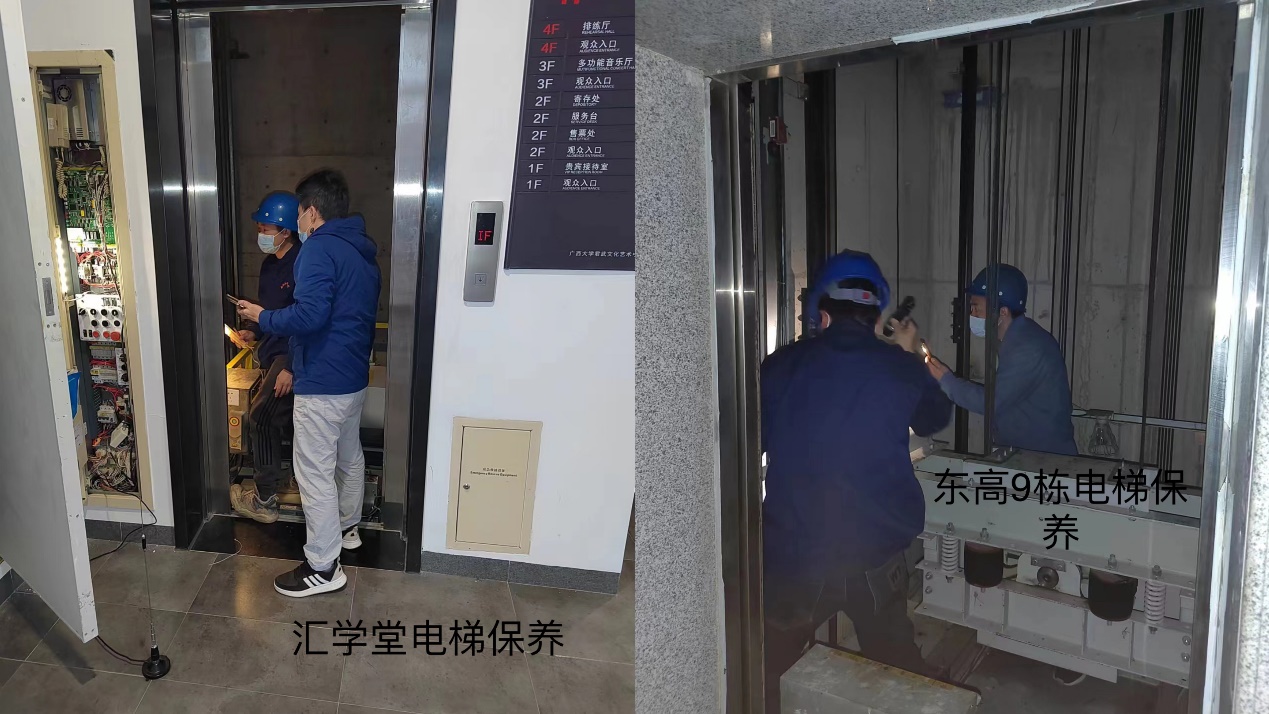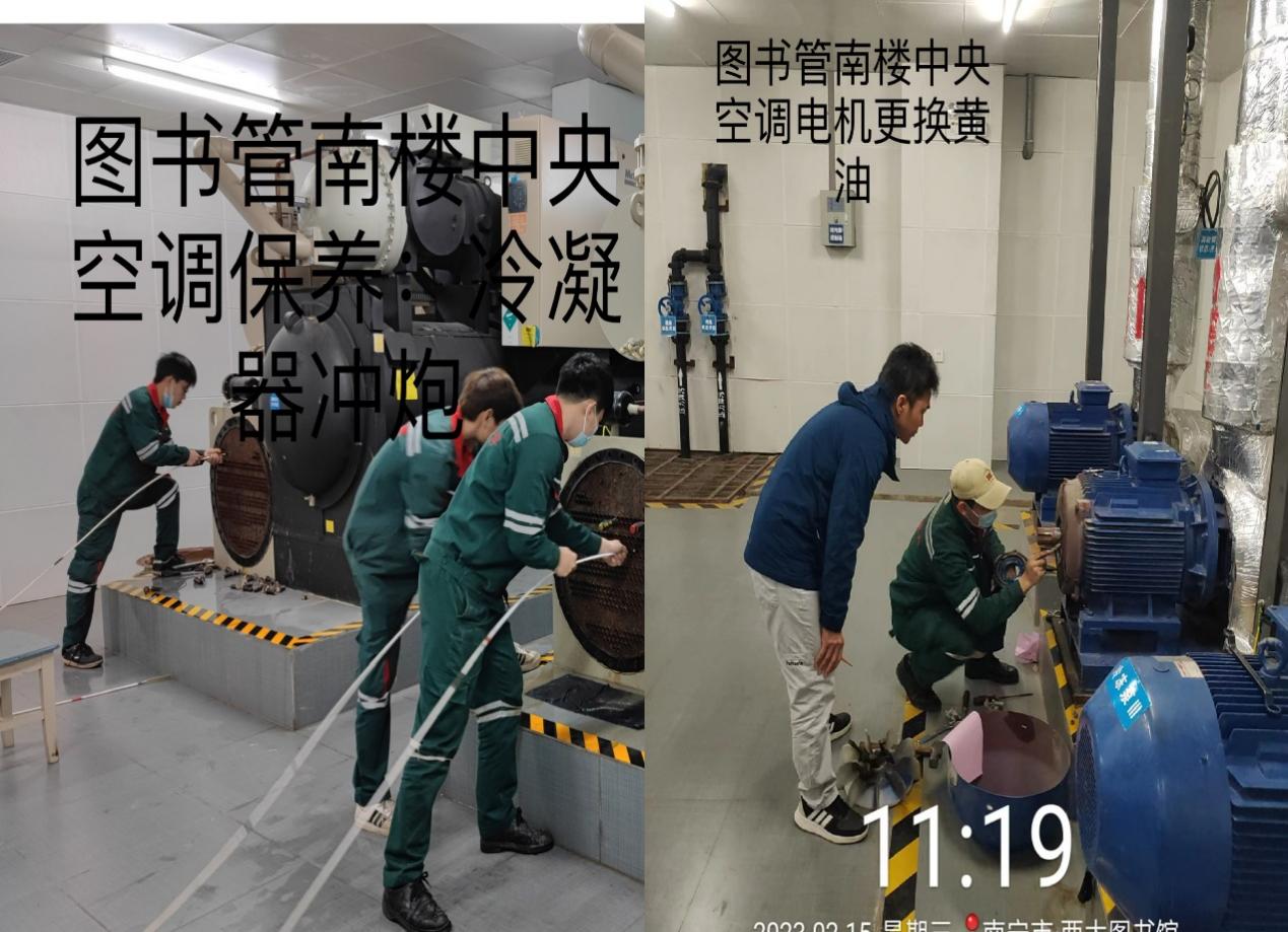 认真做好全校公共通用设备的日常维修管理,同时进行专项的检查与维护,春季学期开学前一周组织新大正物业公司、南宁永日电梯工程有限责任公司等9家维保单位对全校109部电梯、256间多媒体教室及标准化考场设备、18处中央空调、71台直饮水机、149套门禁通道系统和大礼堂会议设备等进行为期7天的检查、维护,保证系统与设备正常安全运行,确保新学期教学、工作、生活秩序正常;完成6A-117教室多媒体设备的改装,满足多媒体教学需求;本月完成维修、检修设备情况:电梯维修21单、检修28单、现场跟进保养143梯次;分体式空调维修65单,检修图书馆南北楼、十教B座、大学生活动中心、物理学院等5处中央空调—冷凝器通炮9个,电动机上油29台,泵体拆修5台,Y型过滤器拆洗19个,控制柜检查6个;多媒体教室及标准化考场设备:维修139单,为2022年秋季学期本科课程期末考试顺利进行提供28场次56人次的技术支持;学生公寓门禁系统及电热水器维修25单,重要会议室及行政办公设备10单,直饮水机维修6单。