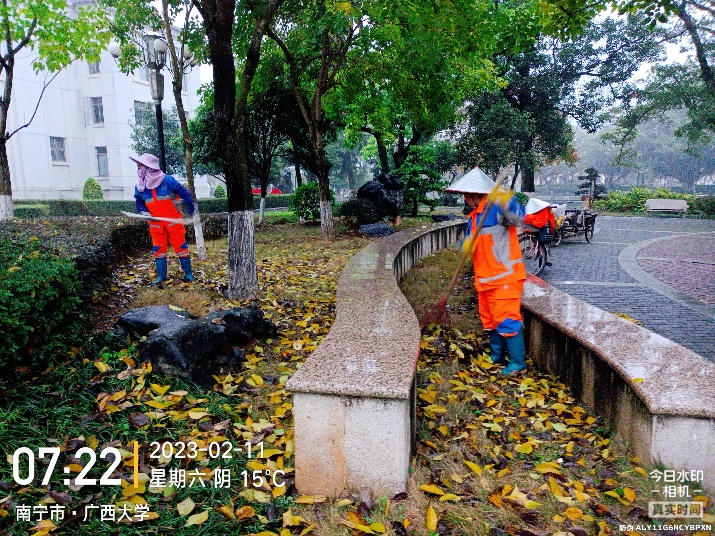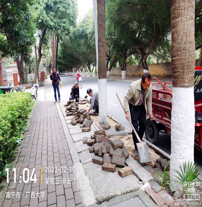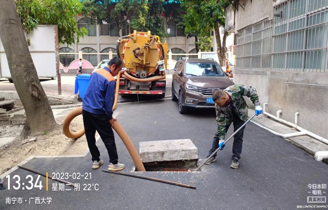 继续做好校内卫生清扫清洁工作,并做好教育部调研检查、中国石油天然气集团公司到校调研、泰国代表团来访等的现场环境维护保洁工作,做好迎检重点保洁工作的同时持续高效地完成日常工作,对校园内主干道、支干道、南大门东大门等各大校门周边,教职工住宅区域楼道以及校内卫生死角等的清洁清扫工作。每日凌晨5点半开始清洁校园的各大校道,作业总面积达789626㎡,人均保洁面积6800㎡,清理住宅区楼道杂物约186处,清理水沟约204条;及时做好清扫工作并协助对各垃圾桶点进行巡查,以及各类垃圾的及时清理清运,并对校内各校道破损地方进行修补维护;清理生活垃圾约为1390吨,家具垃圾约为315立方米,建筑垃圾约237立方米,绿化垃圾约135吨,三轮车清运共1024车次,勾臂车2326车次;引导校内师生与住户正确分类投放垃圾,并继续加强垃圾分类宣传工作力度,深入学生宿舍区、学校餐厅、教工生活住宅区等,向住户发放宣传单,2月份累计发放垃圾投放指南宣传单约3600张,让广大师生对垃圾分类知识有更好的了解并参与其中,养成自觉分类投递的良好行为习惯;对校内的智能垃圾箱、收集亭、宣传展板、垃圾桶、垃圾箱等进行清洁消毒、整理摆放;对垃圾桶、垃圾箱周边进行清洁打扫。
