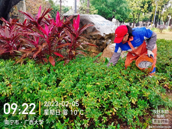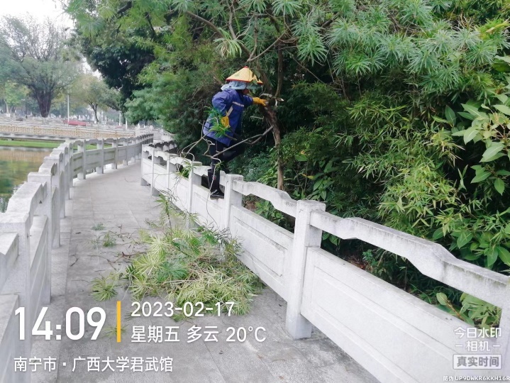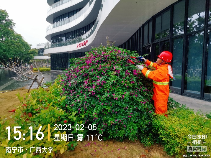 对东西校园各区域进行绿地草坪修整及草坪杂草清除、枯叶清理等日常养护,对教学区域、办公区域绿篱等植物进行修剪、施肥作业,对东西校园各区域树木低枝、枯枝、靠近建筑、靠近路灯树枝、寄生树修剪及树木菟丝子、绿篱菟丝子清除作业,并做好校园各大门日常消杀以及各区域绿地盆栽淋水等工作;绿化养护包括行健学院区域、动物医院覆盖约32.65万平方米;机械打草约16.81万平方米;绿篱修剪约8.91万平方米;拔杂草约28.2万平方米;施肥绿地面积约14.8万平方米;各类树木枯枝修剪、寄生、低枝靠近摄头树枝、靠近建筑树枝等修剪大大小小约7652棵;危树断枝处理9棵;树木截顶8棵;树盆修整142棵;造型修剪约171棵;绿化垃圾处理量约1351立方;本月春季草木生长季节加强各类绿植反复淋水累计面积约62.3万平方米;各区域施肥16.3万平方米;各区域绿地及树木病虫害循环消杀面积约19.4万平方米;菜地处理约321平方米。