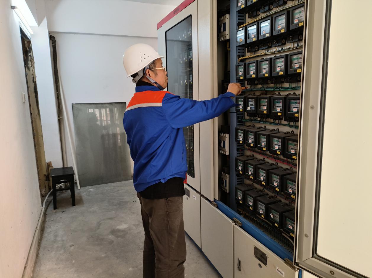 工作人员在巡检配电房