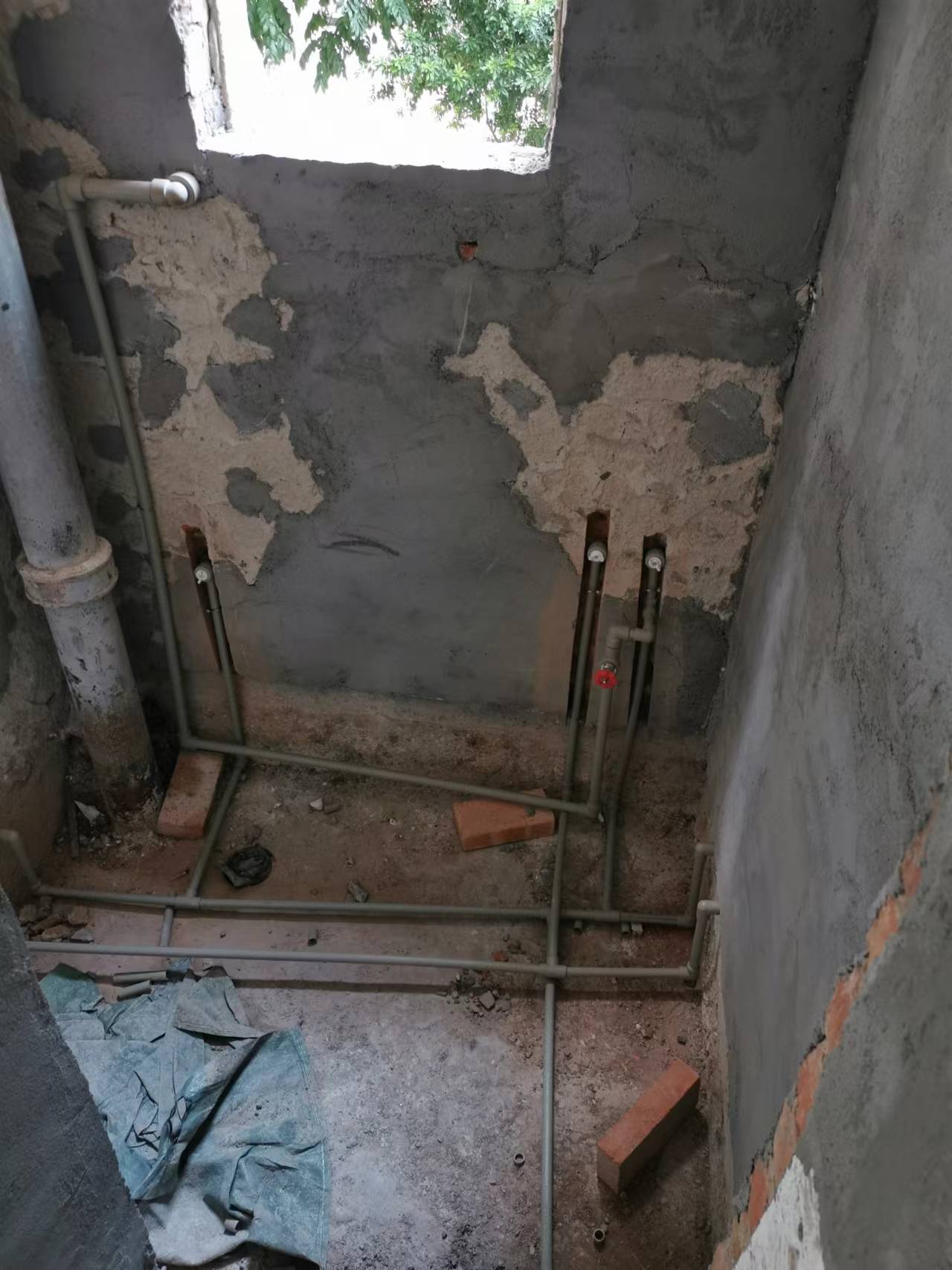 项目进度:完成墙地面拆除,墙面抹灰;给排水安装完成50%。