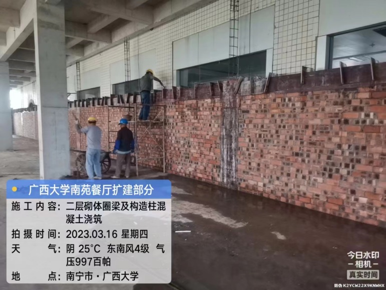 项目进度:扩建部分主体框架已封顶,完成外墙砌筑。
