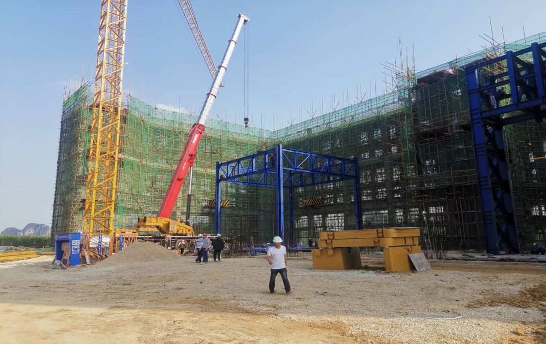 项目进度:摆锤区平台混凝土浇筑完成;1-7轴摆锤区域(除预留设备吊装的连廊)主体结构已封顶;8-20轴落锤区域(除预留设备吊装)已完成至四层板面。落摆锤塔身安装和基础验收。