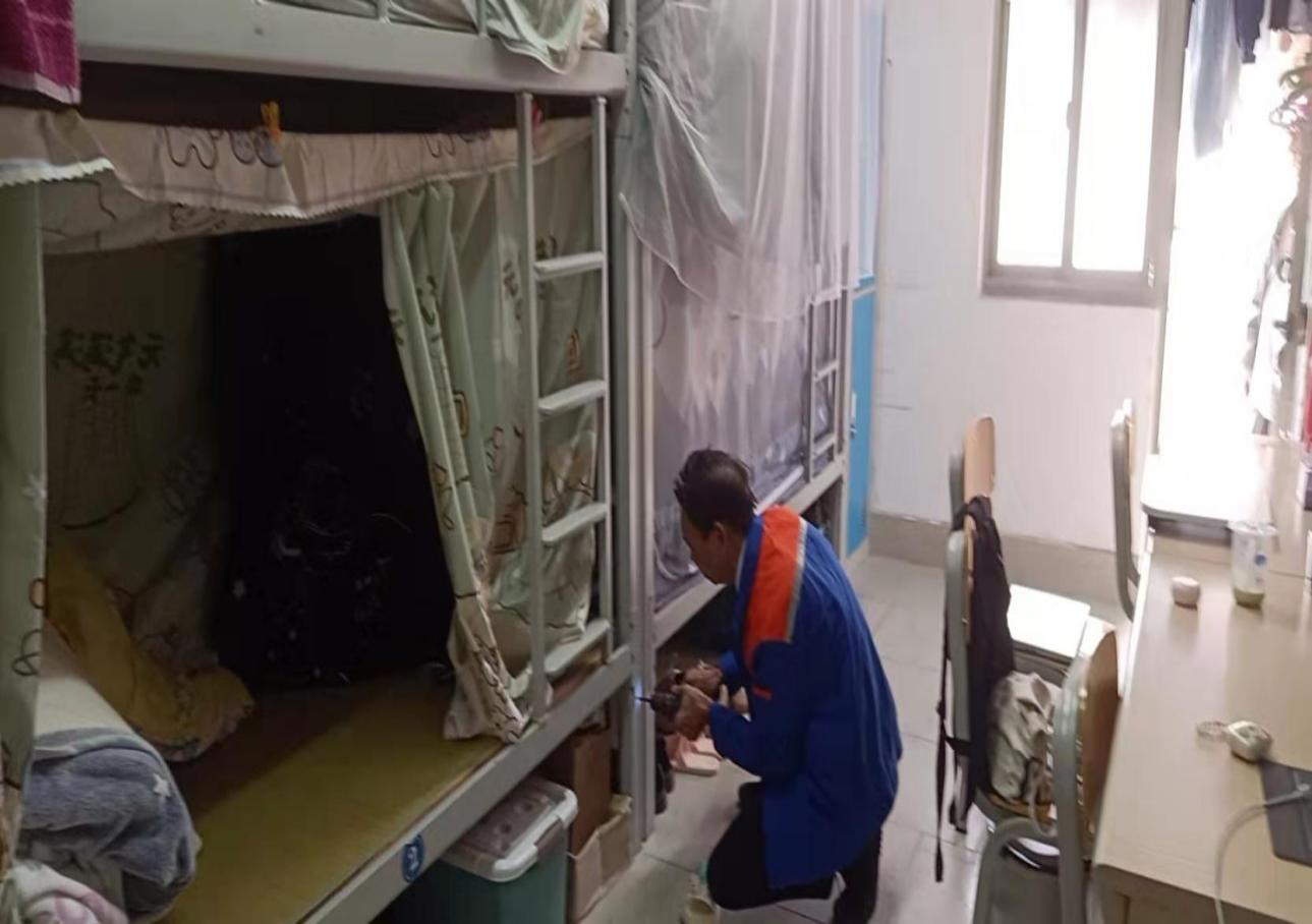 校领导带队调研学生宿舍床护栏加高成品效果情况