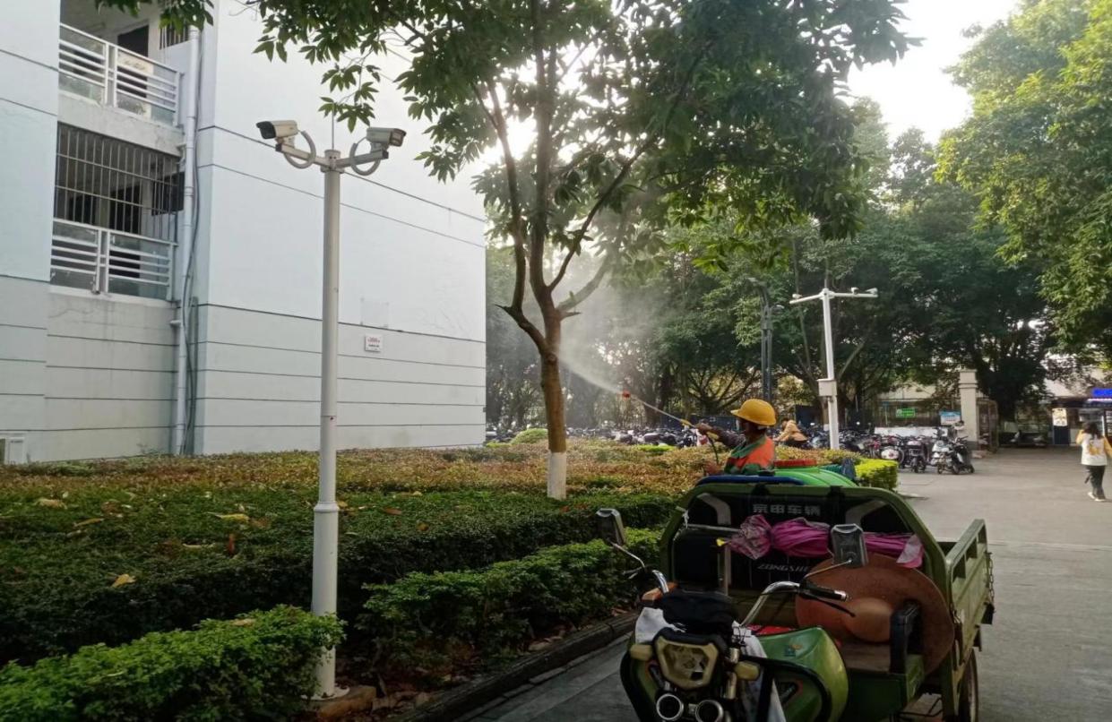 2.对公共教学楼宇的楼梯、走廊、门把手、课桌椅、水龙头、楼梯扶手、电梯间及按钮等高频接触表面进行重点杀菌消毒 2330 次。