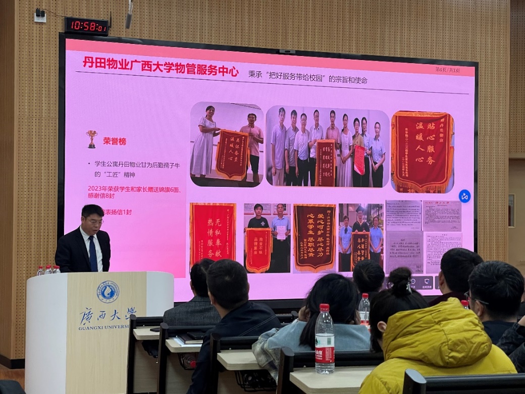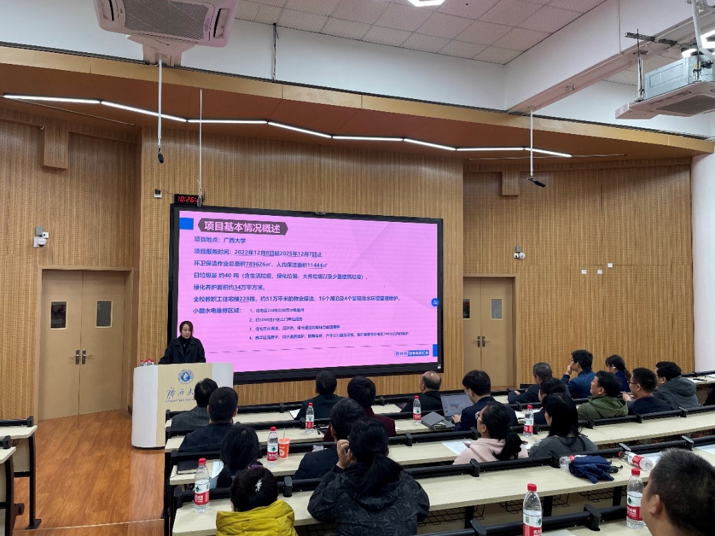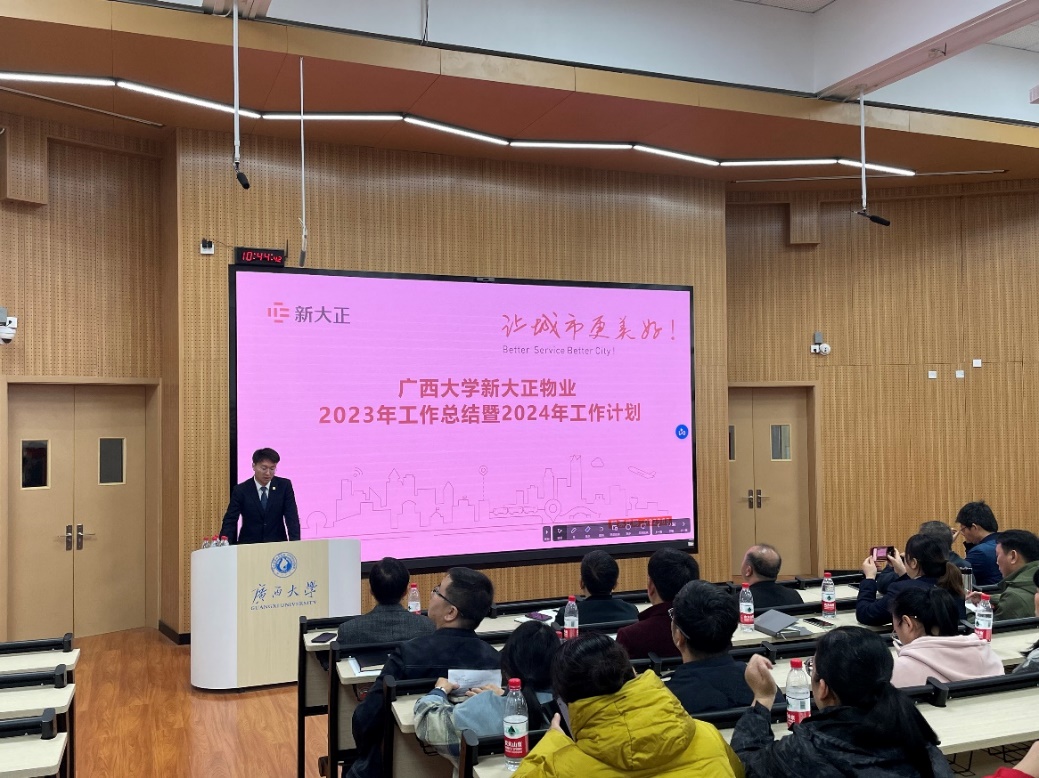 会上,由后勤基建处管理的新大正、丹田、博世科三大物业公司主要负责人作年度工作汇报,各物业公司分别汇报2023年度服务师生工作情况、取得成果以及下一步工作计划。