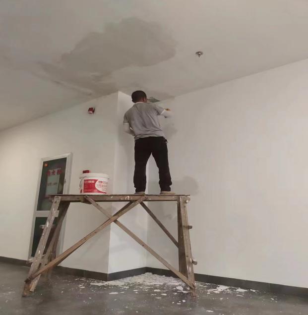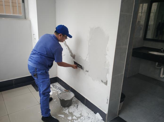 处理君武馆一楼卫生间脱落墙皮