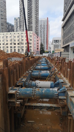 6月份进度:临建办公区、施工现场消防、喷淋和电缆桥架安装完成;完成钢板桩支护、围檩开挖95m和排污、排水管沟钢筋混凝土底板浇筑95m;排污、排水管铺设20m;完成北侧旋挖桩41根,南北侧冠梁施工,旋挖支护桩累计100%完成,场地清表和土方外运约300方。