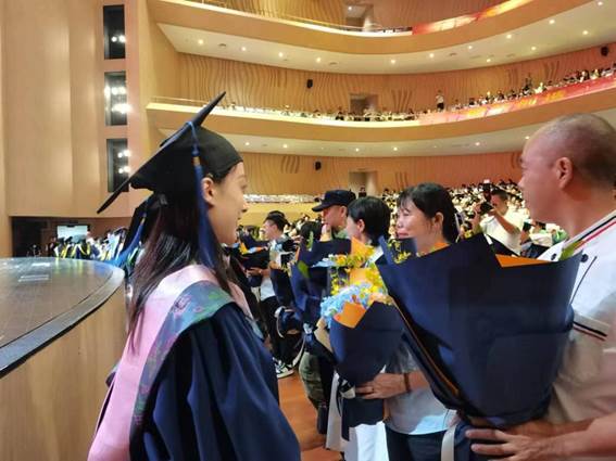 毕业生向宿舍管理人员献花