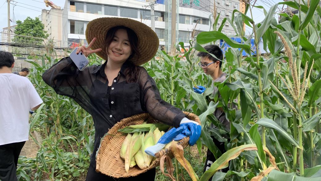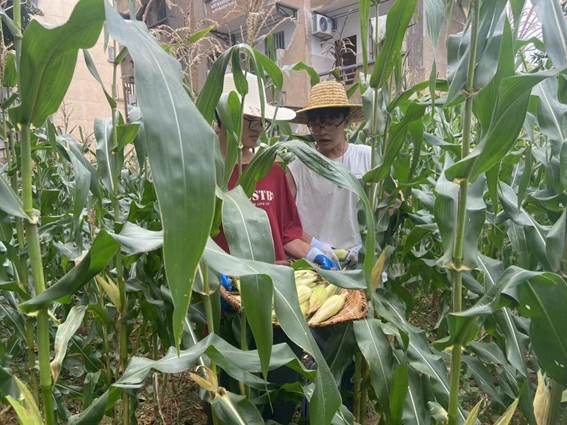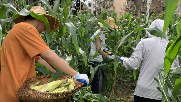 南区劳动育人玉米收获采摘现场