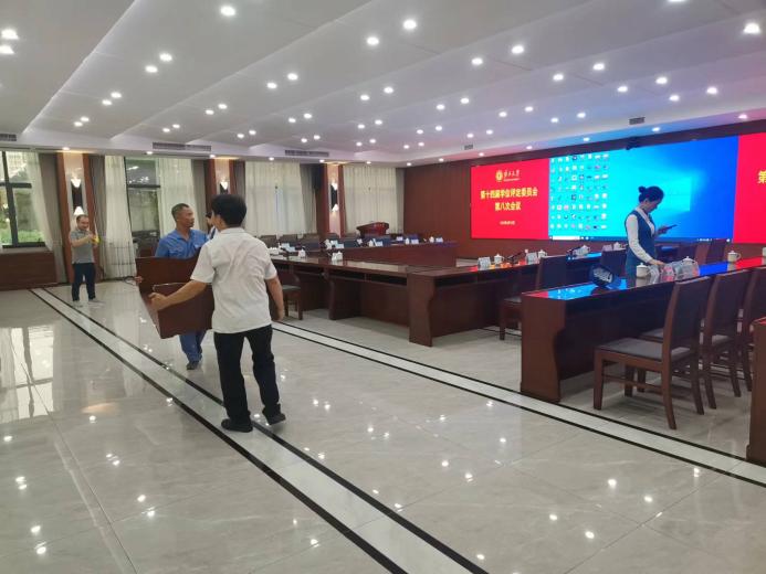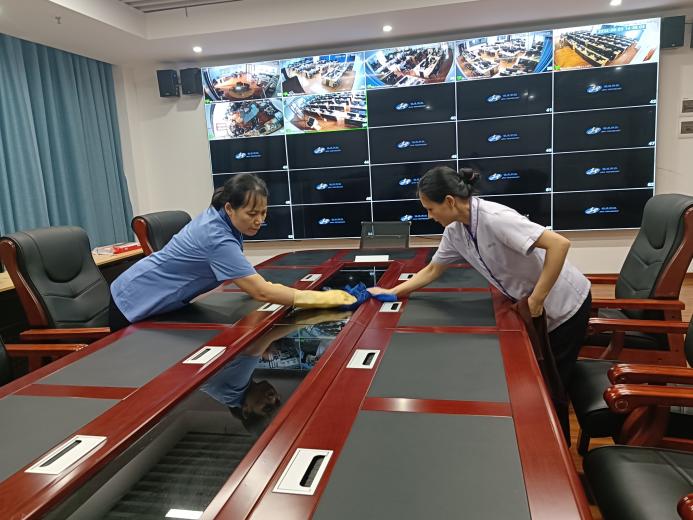 做好校办、君武馆、大礼堂会场布置、会前、会后保洁、会议设备调试及会服等各项会议服务共计117场。