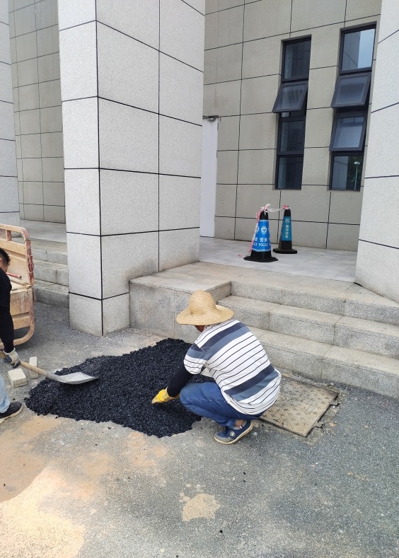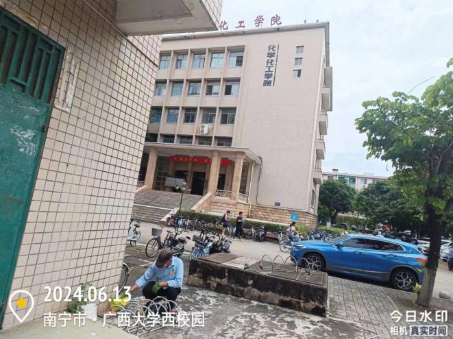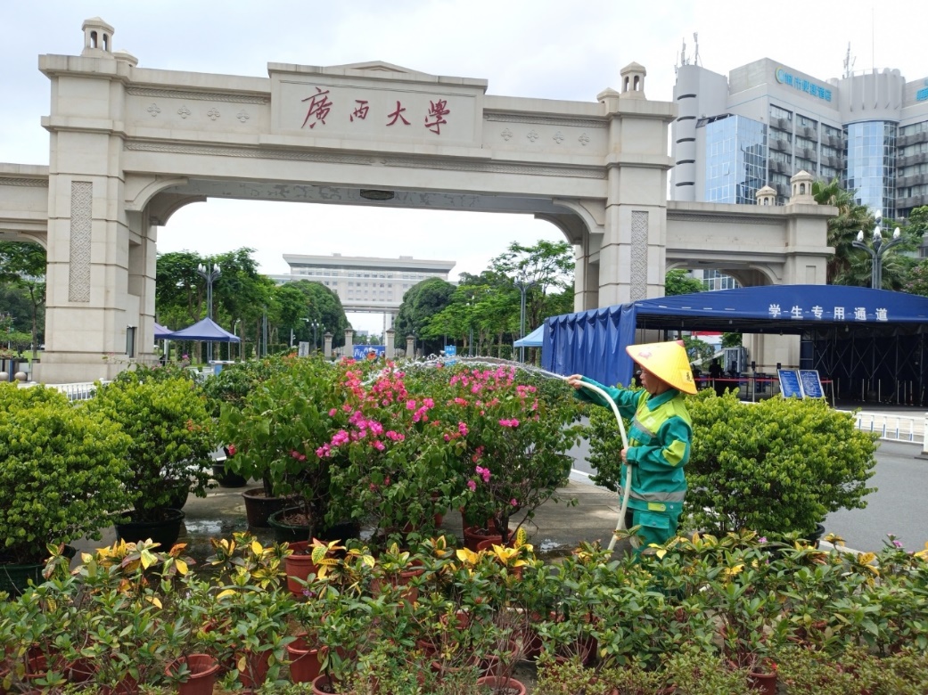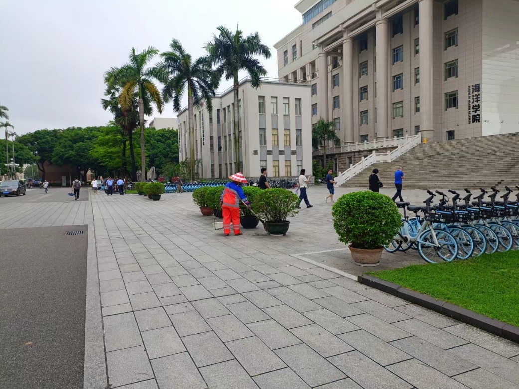 林学院大门和内庭球场台阶上污渍清洁