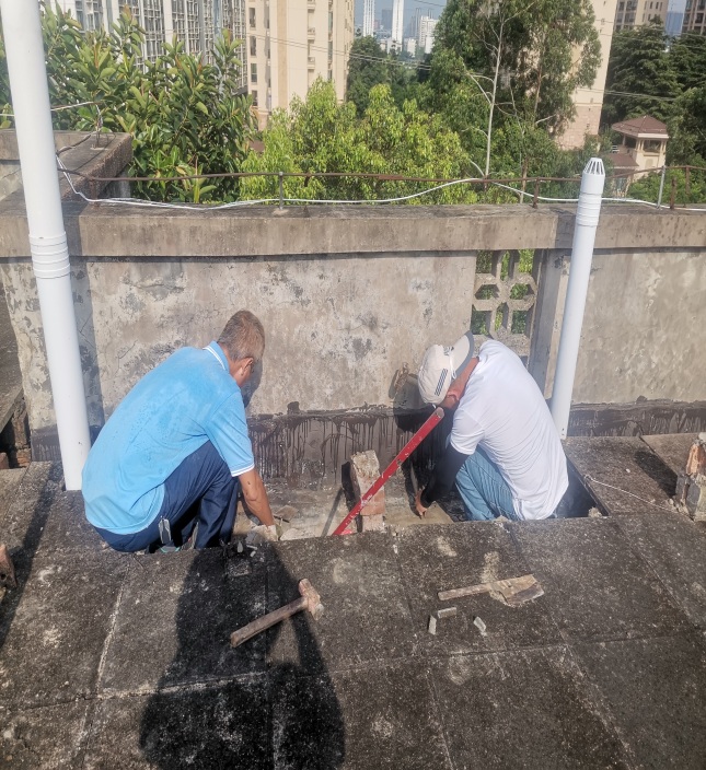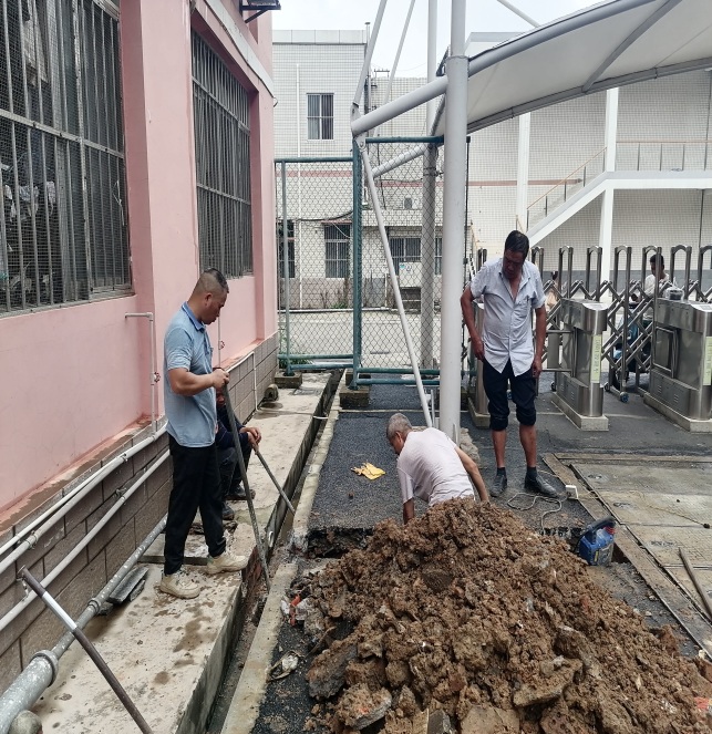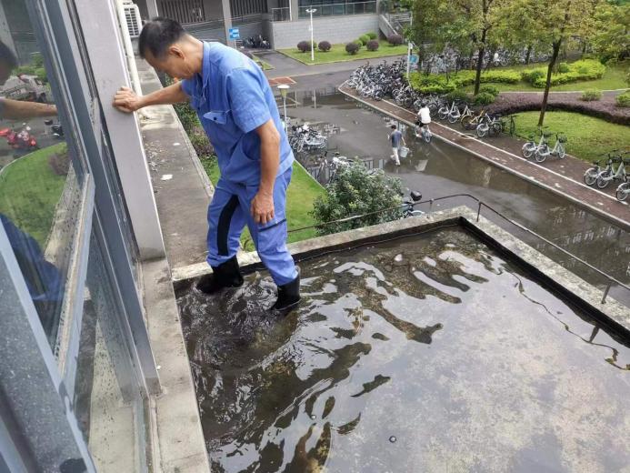 疏通资环材学院二楼天台积水