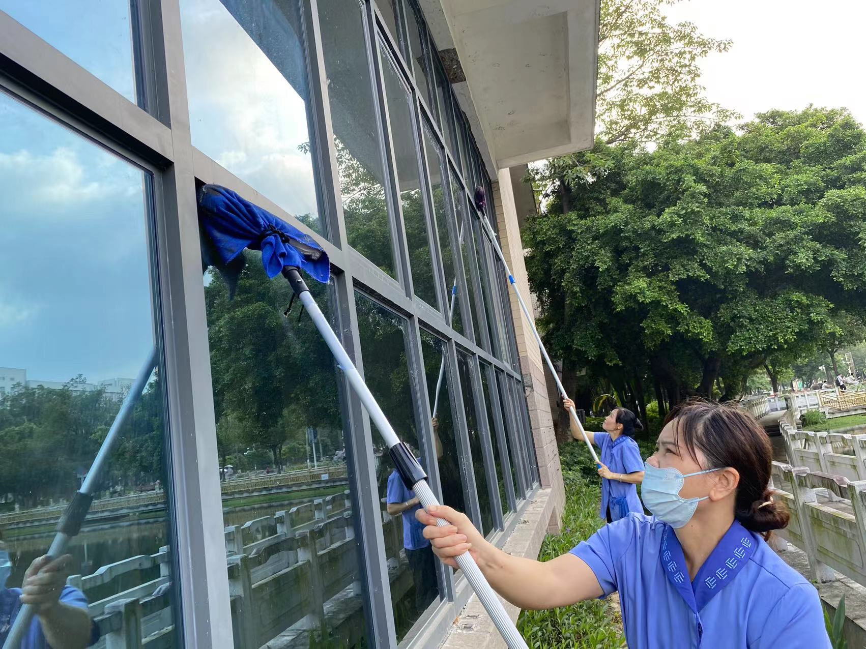 君武馆会议室窗户外围玻璃清洁