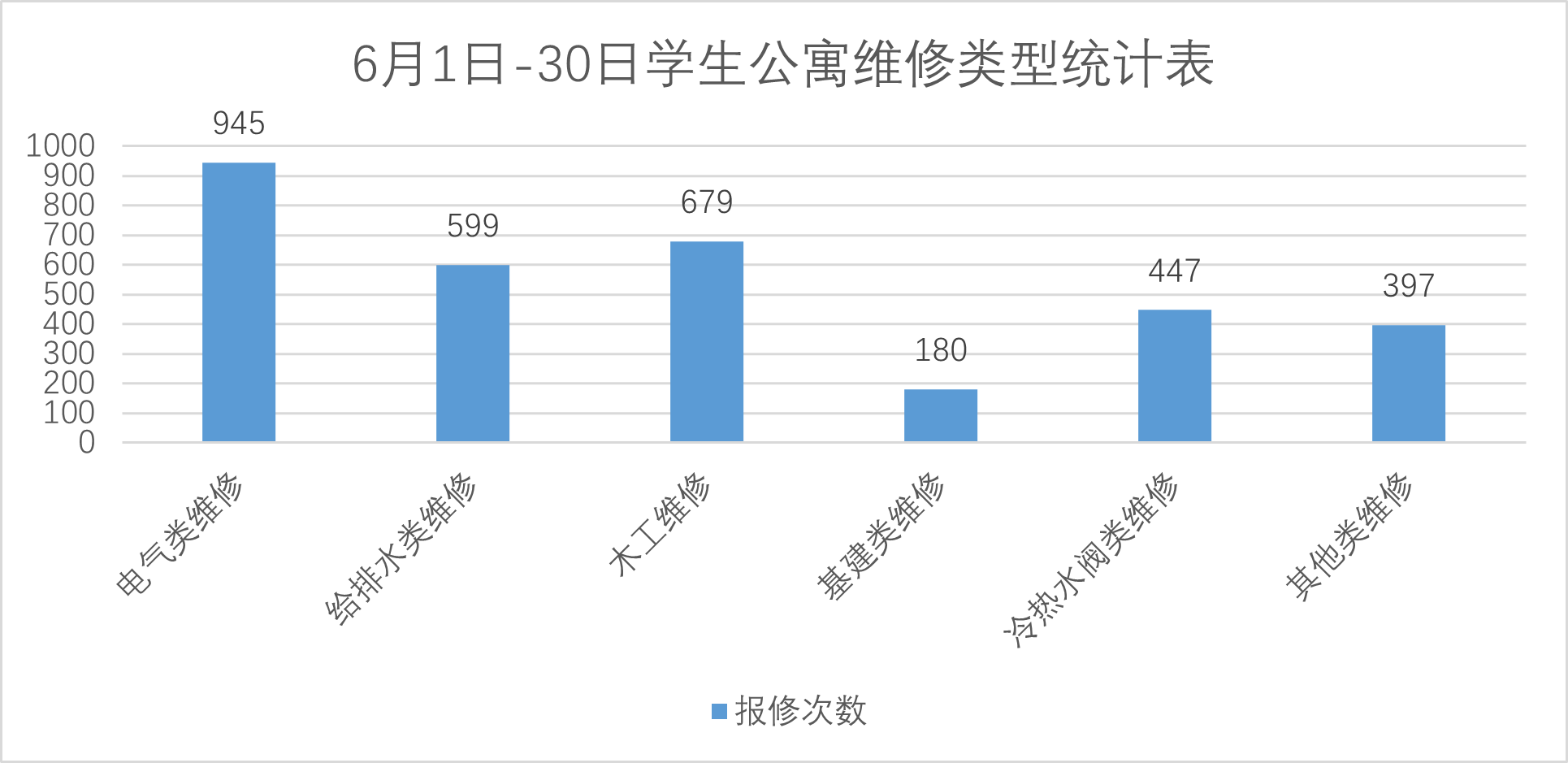 3.本月公共楼宇小型维修共接单1132单,其中电类531单,给水类66单,门窗类79单,排水类187单,疏通类91单,房屋本体类46单,桌椅类50单,其他类82单,完成1079单。
