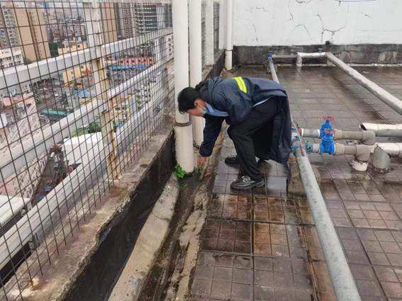 工作人员到楼栋巡检,发现问题及时解决