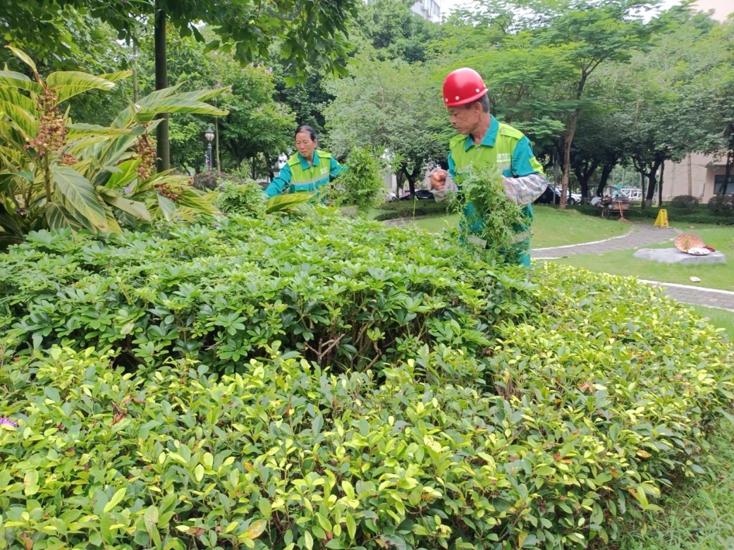 1.正常开展公共楼宇日常保洁服务工作。清理 43 栋公共楼宇外围排水设施内杂物及杂草213次;清理42栋楼宇天台的排水设施内淤泥及杂草175次;重点楼宇卫生保障28次,重要会议保障30次。