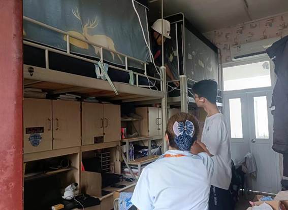 6月4日,学生公寓和水电土建维修、学生代表、丹田物业一起联合开展月检工作
