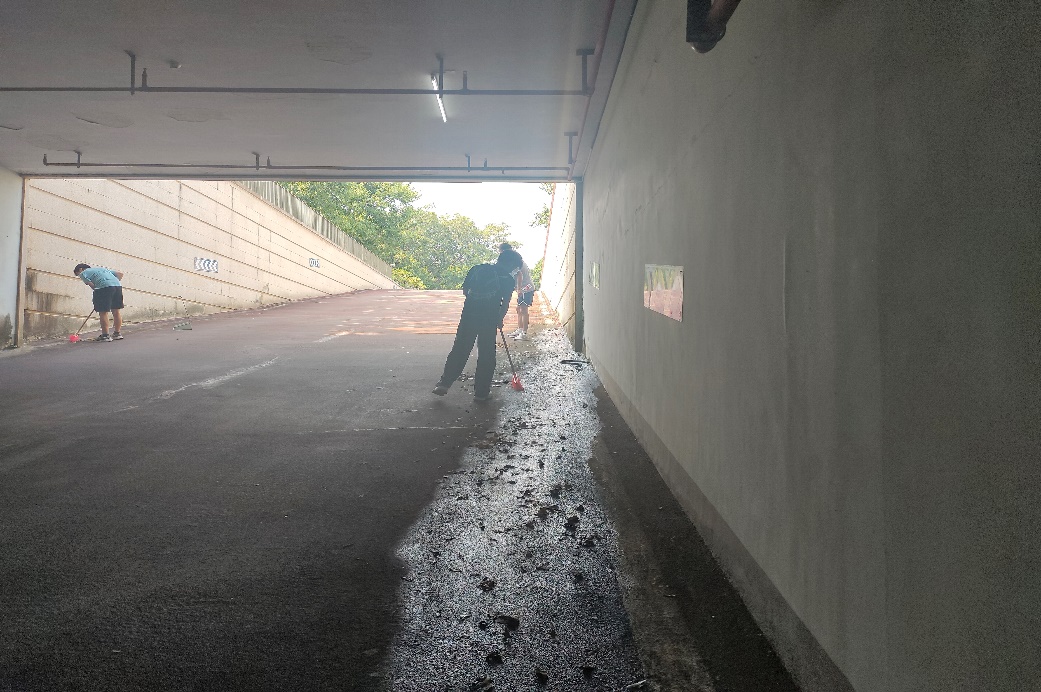 大学生在西校园网球中心地下停车场开展劳动教育实践课