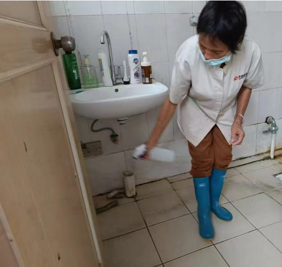 处领导到东31-35栋检查洗漱台加固及排水工作