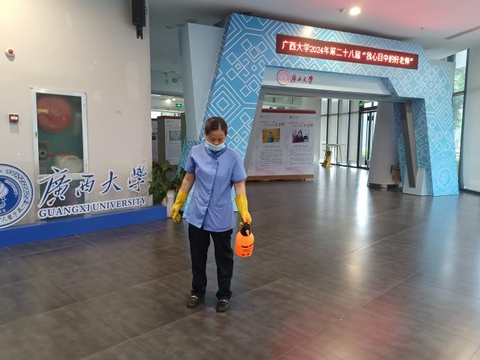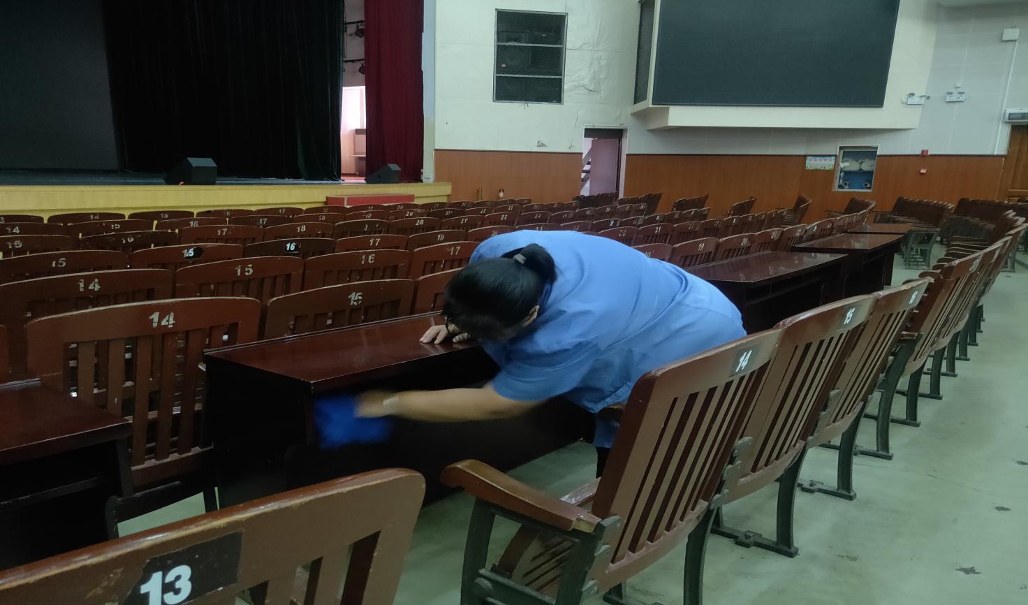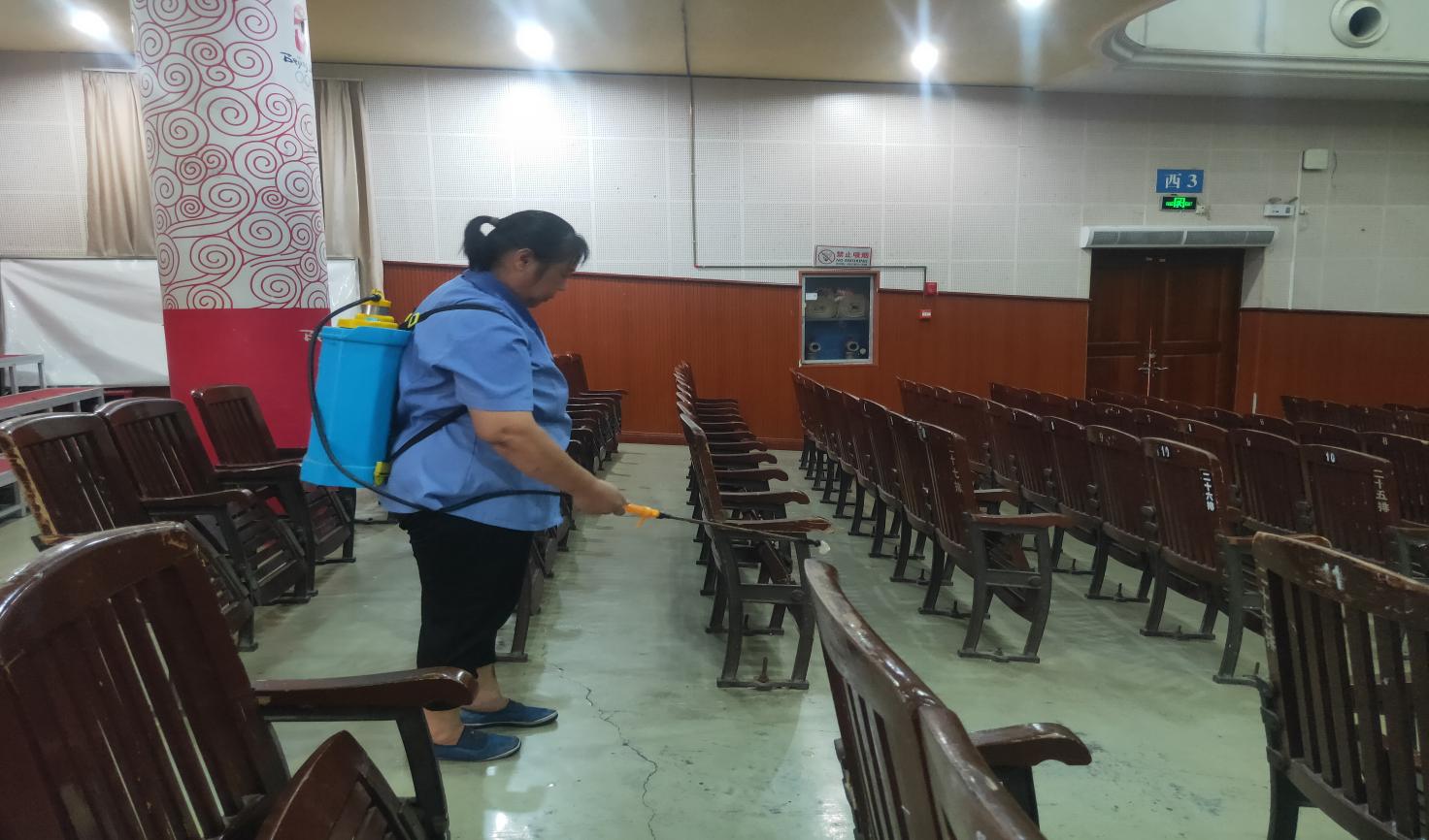 2.对公共教学楼宇的楼梯、走廊、门把手、课桌椅、水龙头、楼梯扶手、电梯间及按钮等高频接触表面进行重点杀菌消毒2836次。