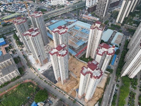 ③6#、7#楼:砌筑完成,内墙抹灰及顶棚素水泥浆已完成,楼梯间腻子已完成,窗框、阳台栏杆及烟道安装完成2/3,开始施工外墙抹灰及外墙漆。