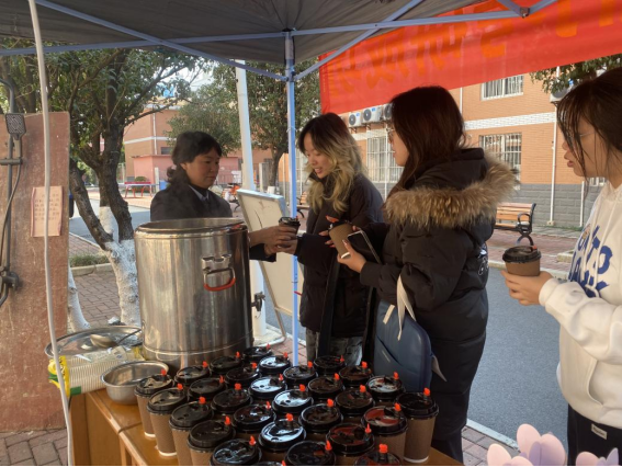 阿姨为同学们送上暖心姜糖水,为考研学生加油