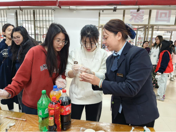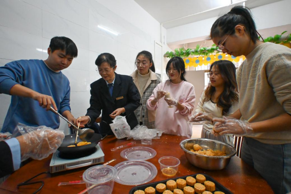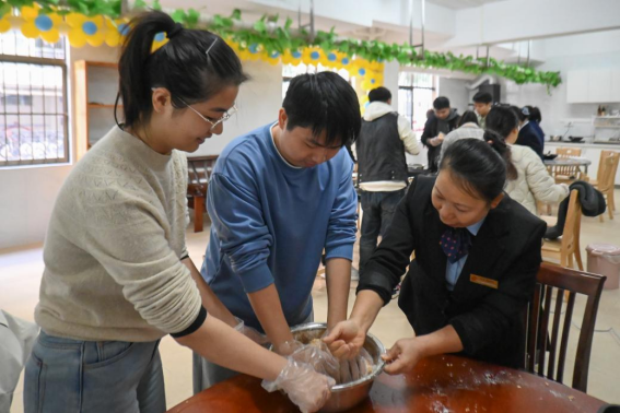校党委常委、副校长宁旭初、后勤基建处党委书记黄必春与同学们一起包饺子
