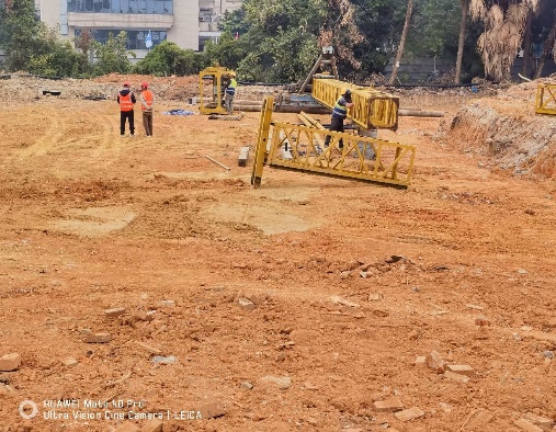 ④桩机、挖掘机、吊车等多台大型机械设备已进场,正在进行桩基础的工程桩施打工作,完成试桩8根、工程桩82根。