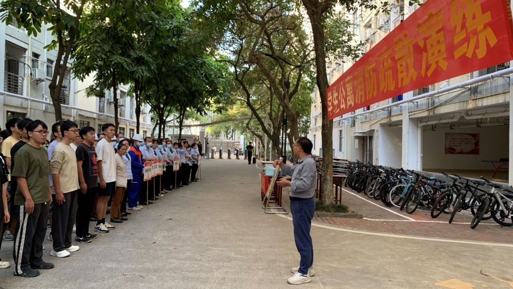 3.11月19日下午,后勤基建处在东35栋园区开展2024年学生公寓消防疏散演练活动。活动内容包括消防安全知识宣讲、宿舍应急疏散、基本救护方法演练、灭火知识及灭火器的使用以及学生公寓安全知识问答等环节,后勤基建处、丹田物业工作人员及学生400余人参与本次演练活动。