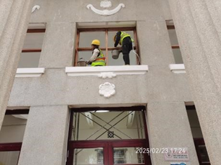 39.土建维修改造动态。刷粉林学院办公室发霉墙面210平方米,开挖教职工住宅区塌方堵塞化粪池排污管43米,维修加固有安全隐患围墙10米,修补行健学生31栋南面破损路面50平方米,西校园南区6栋西头补漏水水管开挖的人行道砖20平方米。粉刷数信学院东头大门内墙面60平方米。油漆保养创发院楼顶木质地板、围栏260平方米,修补南侧门脱落墙砖6平方米,抢修疏通生科院男厕排污总管13米、疏通水稻研究所后面排水沟34米,维修安装汇学堂三楼大厅玻璃20平方米等。完成土建类维修工作183单,做好2025年春季开学前学校基础公共设施检查工作,为开学后的道路等各类设施安全以及公共楼栋教学、办公场地美化提供保障。