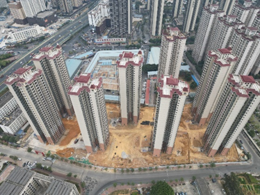 ①1#、2#、3#、5#楼:砌筑、抹灰、楼梯间腻子及涂料已完成;栏杆、窗框、烟道安装完成;卫生间回填及屋面防水、保温及保护层完成;阳台防水涂料已完成;外墙抹灰层和外墙真石漆完成95%;楼梯间地面瓷砖完成;电梯厅地面砖和墙砖完成90%;电梯厅吊顶完成90%;窗户玻璃安装完成85%;室内地面找平完成50%。