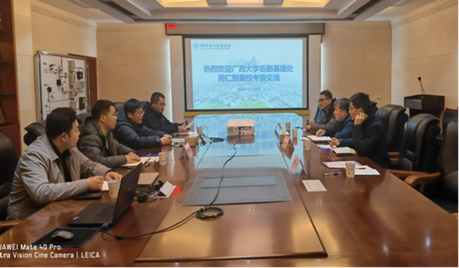 29.处领导带队赴桂林电子科技大学开展专项调研。为进一步深入落实国家节水节能政策,加快推进学校合同节水建设的新模式,2月19日,后勤基建处领导带队赴桂林电子科技大学开展节水专项调研,就合同节水的政策、节水模式、实施效果、立项投资以及后勤基建处制度建设等议题进行深入交流。
