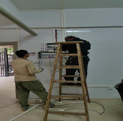 维修行健涵洞宣传栏照明灯 安装共享厨房智能电表及线路插座