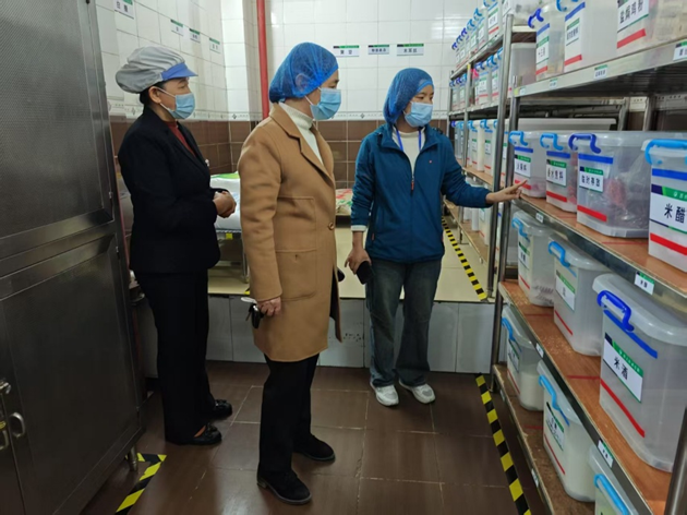 检查碧湖苑餐厅副食品仓库 检查东苑餐厅食材处理情况