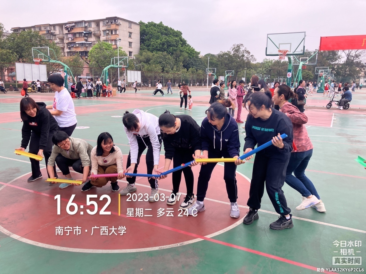 为庆祝第113个“三八”国际妇女节,进一步团结带领广大女职工听党话、跟党走,凝心聚力推动学校“全面一流”建设,3月7日下午,校工会在西校园运动场举办“践行党的二十大 巾帼展风采”庆祝三八妇女节活动。后勤基建处分工会精心谋划,积极组织女职工参加活动比赛。在 “回娘家”、“珠行万里”的两个项目比赛中,队员们团结协作、密切配合、争分夺秒,现场气氛活跃热烈,笑声、加油喝彩不断,经过近2个小时的比赛,后勤基建处分工会最终荣获团体二等奖的好成绩。
