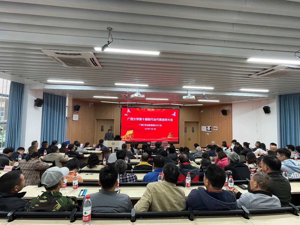 11月14日下午,后勤基建处在十教A座102教室组织召开全体教职工大会和分工会会员大会,选举产生后勤基建处分工会新一届委员会委员、学校第十届教职工代表大会代表、学校工会第十三届会员代表大会代表。大会由后勤基建处党委副书记、副处长(主持全面工作)余波主持。全体教职工和工会会员参加会议。