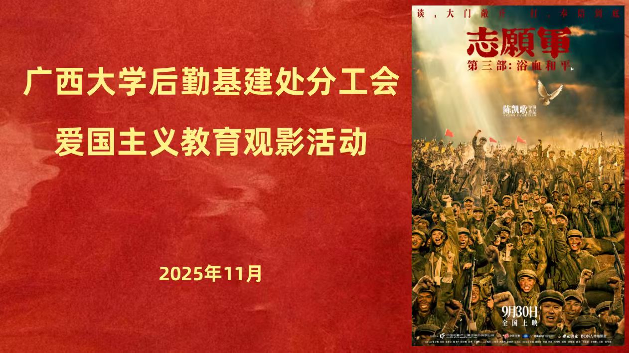 为进一步加强爱国主义教育,凝聚团结奋进力量,11月13日下午,后勤基建分工会组织80名教职工集体观看爱国主义影片《志愿军:浴血和平》。