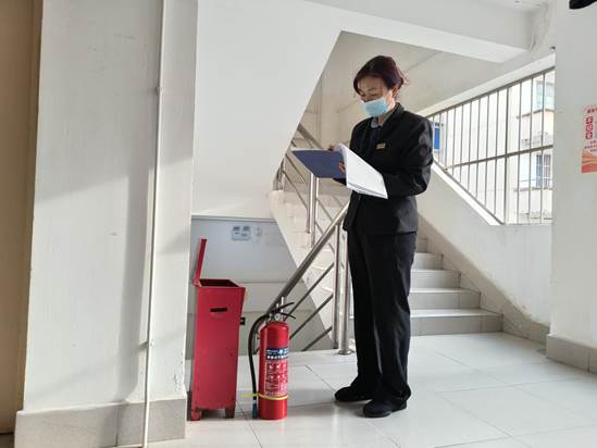 工作人员对学生公寓消防设施进行日常巡检