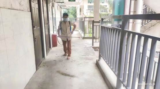 工作人员开展公共区域消毒消杀工作