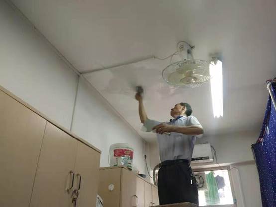 认真做好园区内各种设备设施和33间自习室的保洁维护工作。擦拭学生公寓园区内472个生活设施(其中公共长椅102张,乒乓球桌152张,晾衣架134个、健身器材84个)。